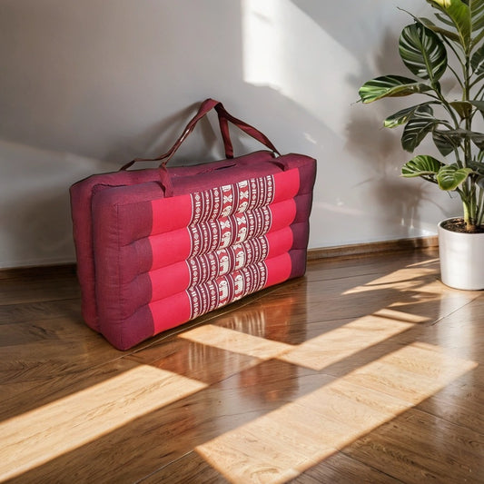 Handmade 2-Fold Meditation Cushion – Thai Kapok Yoga Mat with Portable Handle