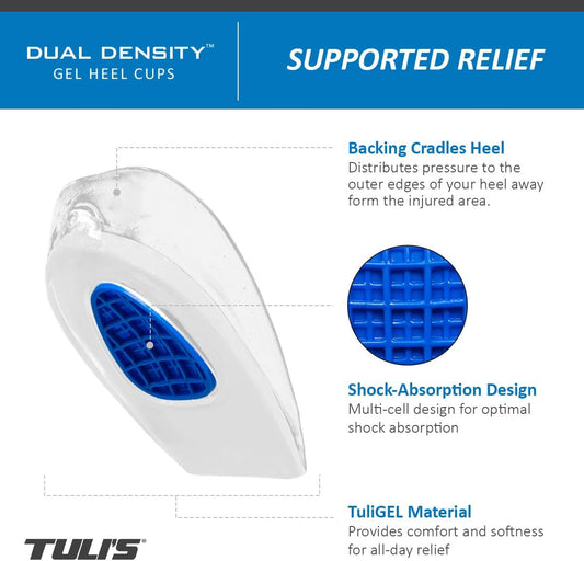 TULI's Heel Cups - Heavy Duty Green, Shock Absorbing Heel Cups for Heel Pain Relief, Heel Spurs, and Foot Supportups