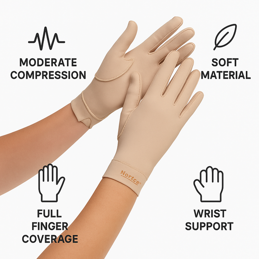 Norco Edema Gloves - Full Finger, Over Wrist - Soothing Compression Gloves for Arthritis & Swelling Relief (15-25mmHg)