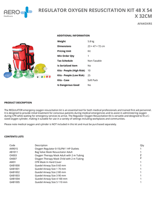 REGULATOR Oxygen Resuscitation Kit | Includes Bag Valve Mask, Airway Guedel, and CPAP Accessories