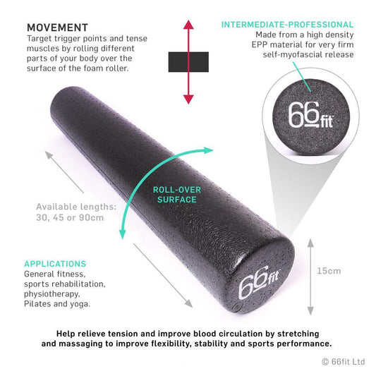 66fit High‑Density EPP Foam Roller — 15 cm x 90 cm (Black)