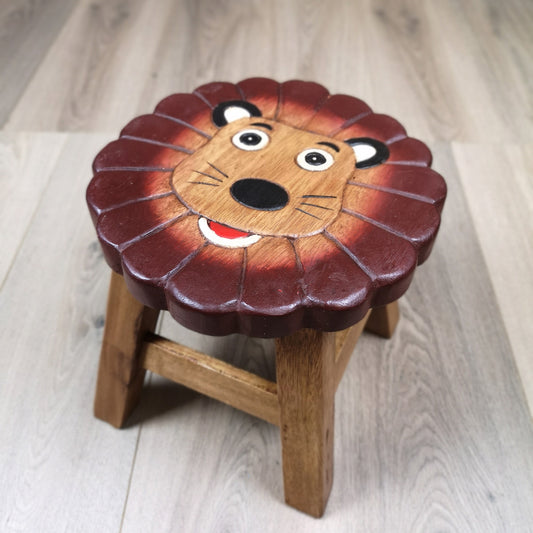 Premium Kids Wooden Lion Stool – Handmade Solid Wood Toilet Training and Step Stool
