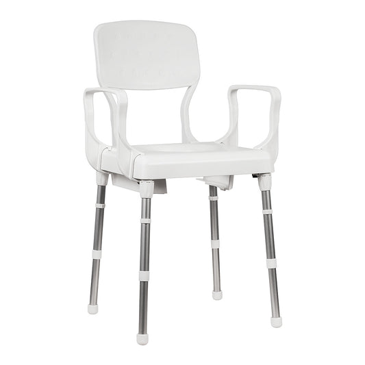 Compact Shower Commode Chair for Small Adults - Cushioned Seat, Swing Armrests, 90kg Capacity