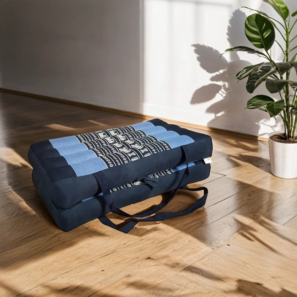 Handmade 2-Fold Meditation Cushion – Thai Kapok Yoga Mat with Portable Handle