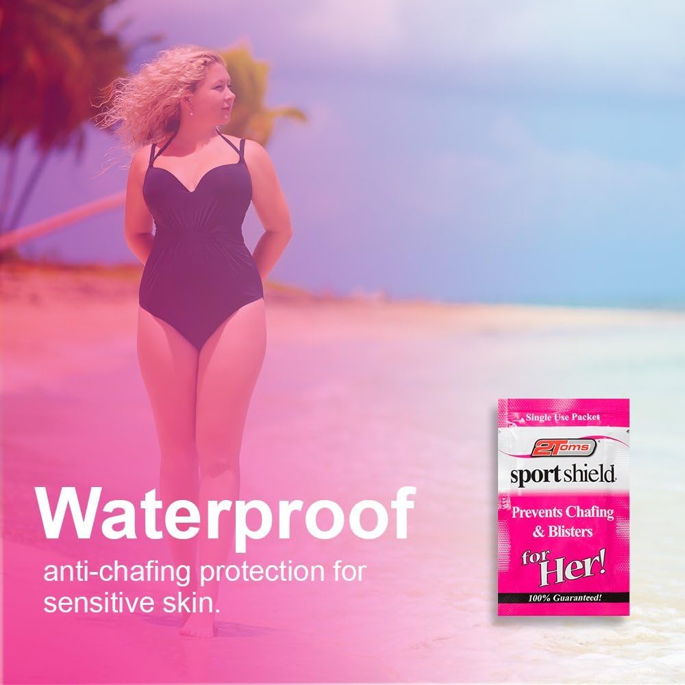 2Toms SportShield for Her! Anti Chafing Single-Use Towelette delivers the perfect balance of protection and comfort in a silky-smooth formula that lasts all day! SportShield for Her’s revolutionary waterproof formula prevents the friction that causes chafing and blisters while performing with you under the most grueling conditions, even while swimming.