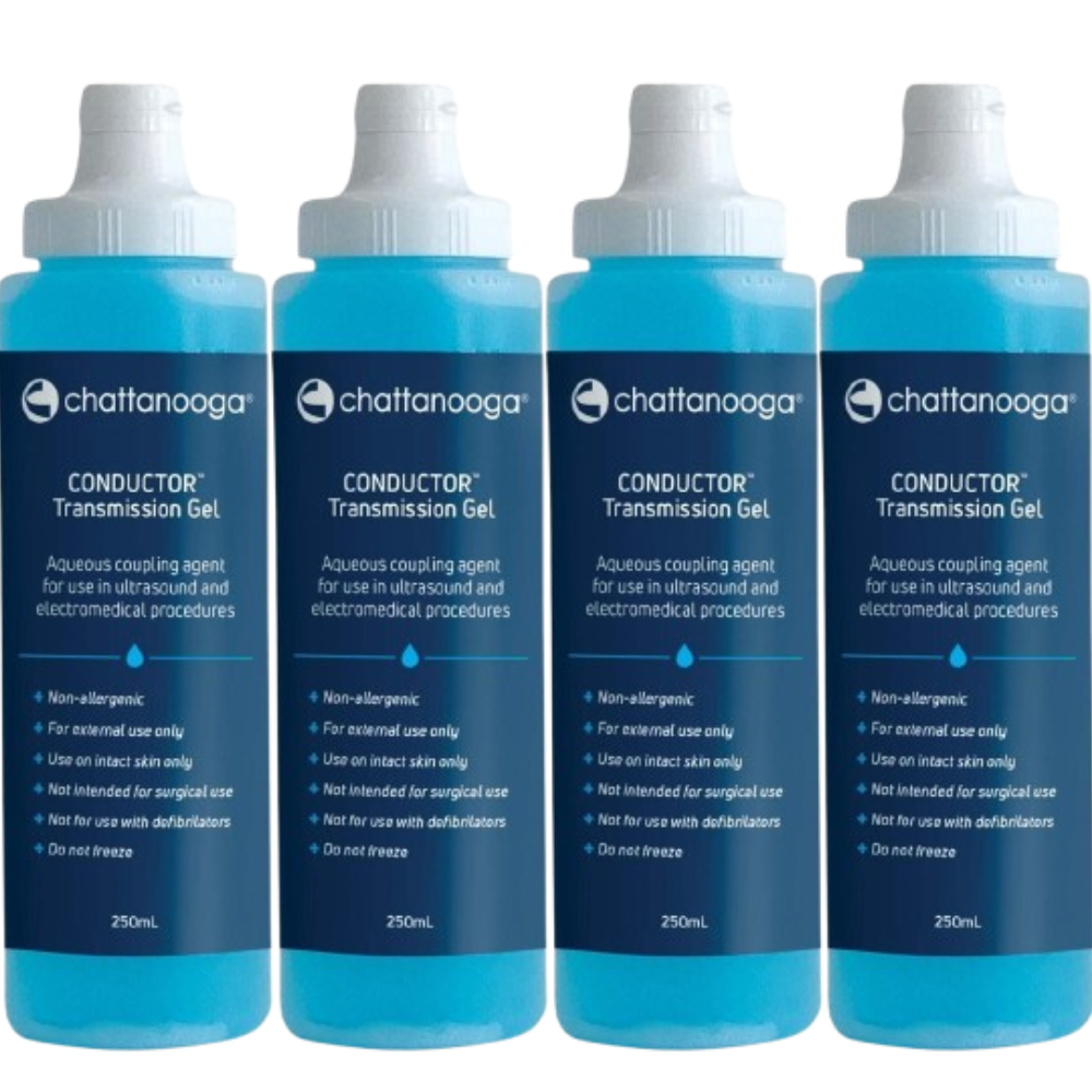 The Chattanooga Conductor Transmission Gel is a non-allergenic, aqueous coupling agent for use in ultrasound and electromedical procedures.