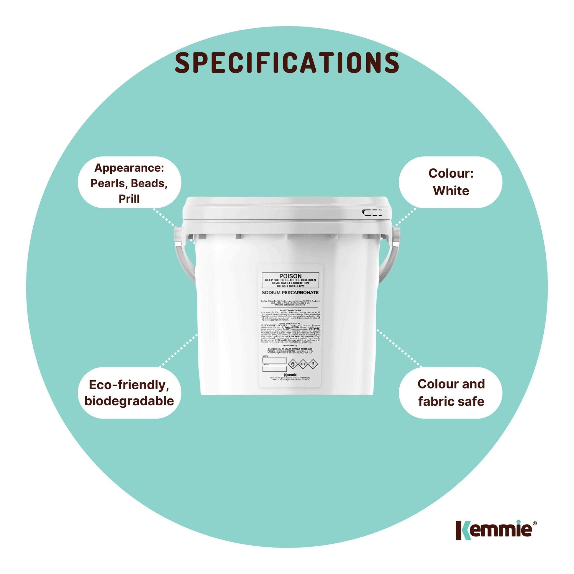 Sodium Percarbonate in resealable buckets.