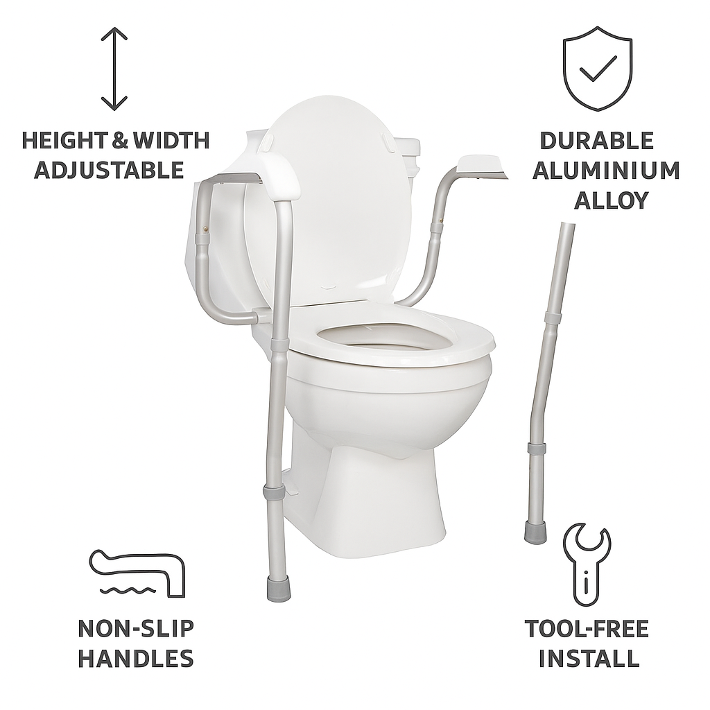 - Adjustable Height & Width: Customise the rails to fit various toilet sizes and user needs.