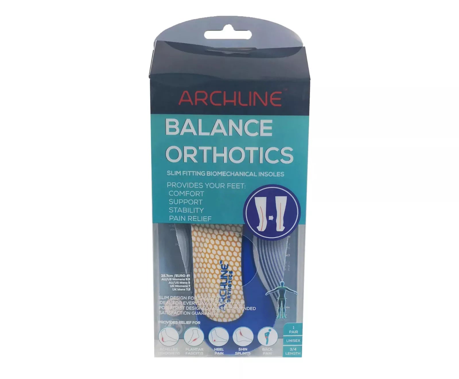 Archline Orthotics are ideal for foot conditions such as plantar fasciitis, arch pain, heel pain. Even if you don’t have foot pain, the Archline Orthotics provide optimal comfort and support to any foot type – normal arches, flat feet, high arches, wide feet.