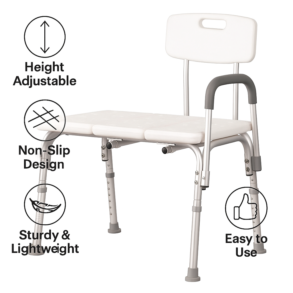 Adjustable Height Bath Transfer Bench – Non-Slip Shower Chair for Elderly & Disabled – Bathroom Safety Aid