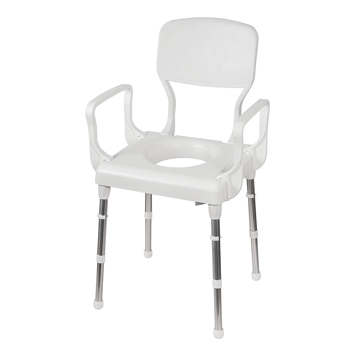 The Rebotec Lyon Height-Adjustable Commode Chair is a versatile solution for those requiring mobility support in the bathroom. Made in Germany, this chair boasts a durable, ergonomic design with a robust aluminium frame, ensuring it withstands the test of time.