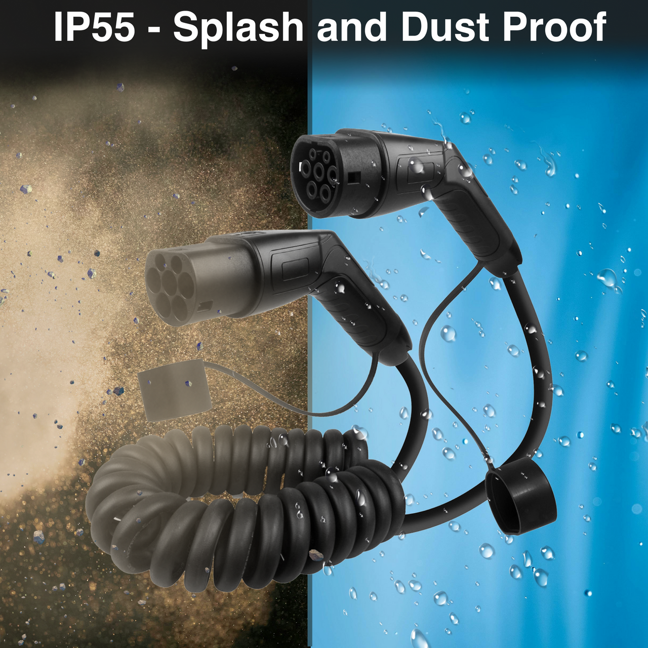 - IP55 Rated: Designed for both indoor and outdoor charging applications, with protection against water and dust ingress, ensuring durability and a longer lifespan.