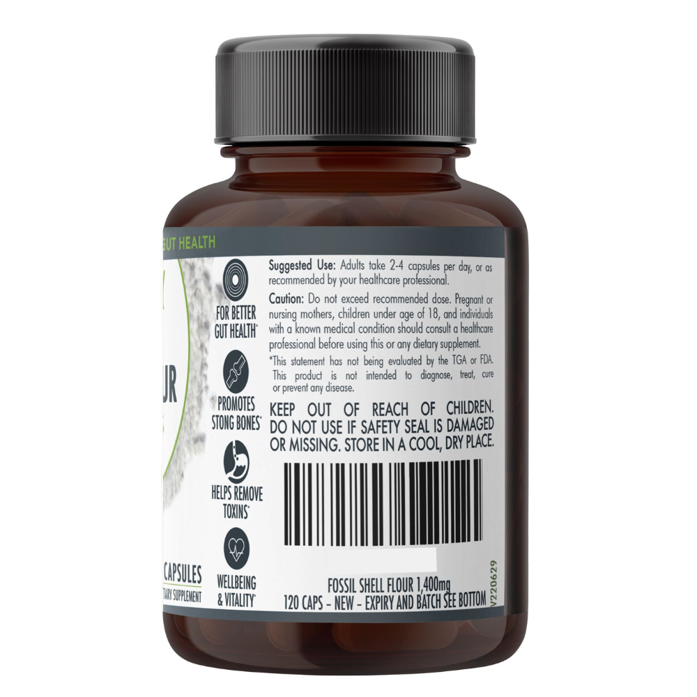 Fossil Shell Flour Capsules (120 Pills) - Vegan 1,400 mg Food Grade Diatomaceous Earth Supplement