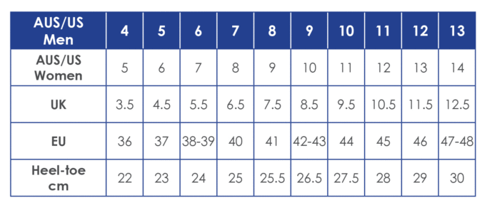 - Available in 10 sizes, from Women's 5 to Men's 13