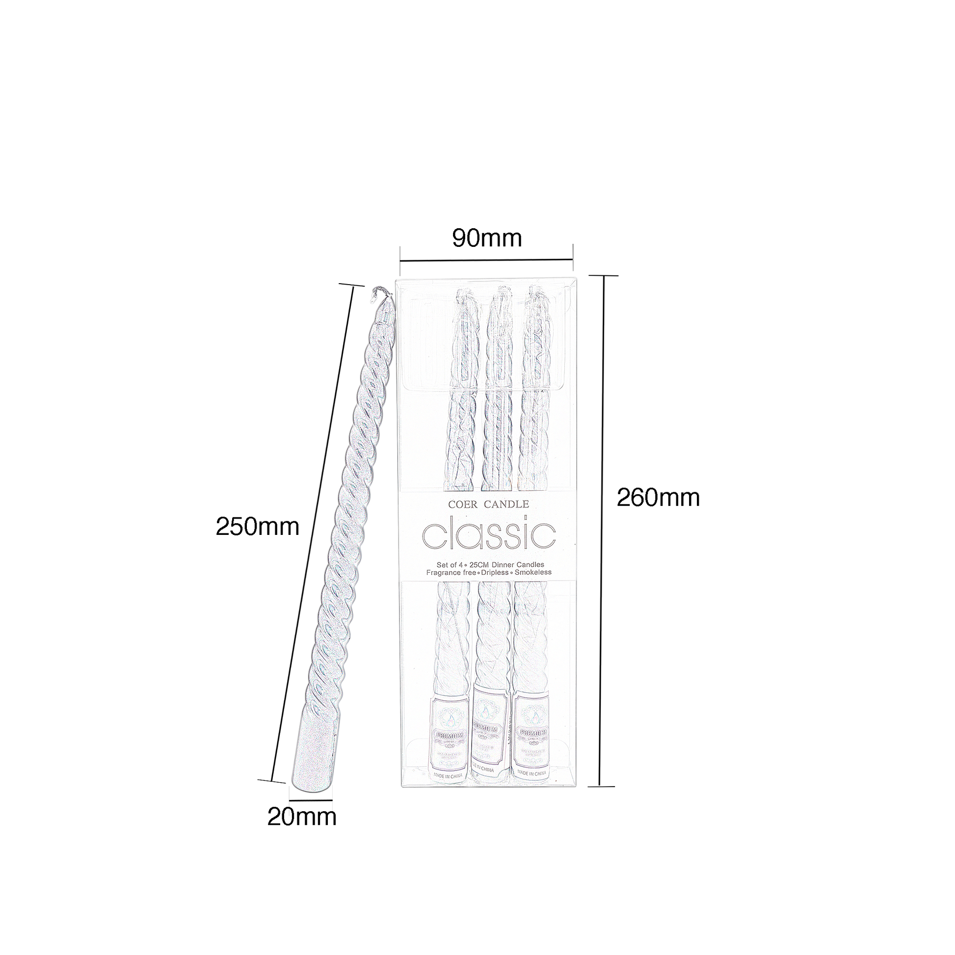 A dance of smooth lines, this classic candle with classic shapes, makes for a traditional decorative accent. Fashioned entirely of wax, this piece has a cylindrical shape with the choice of smooth texture or spiral pattern. This piece will be a stunning decorative accent with any candle holders on a console, side table, or bookshelf, diffusing an inviting glow into any room.
