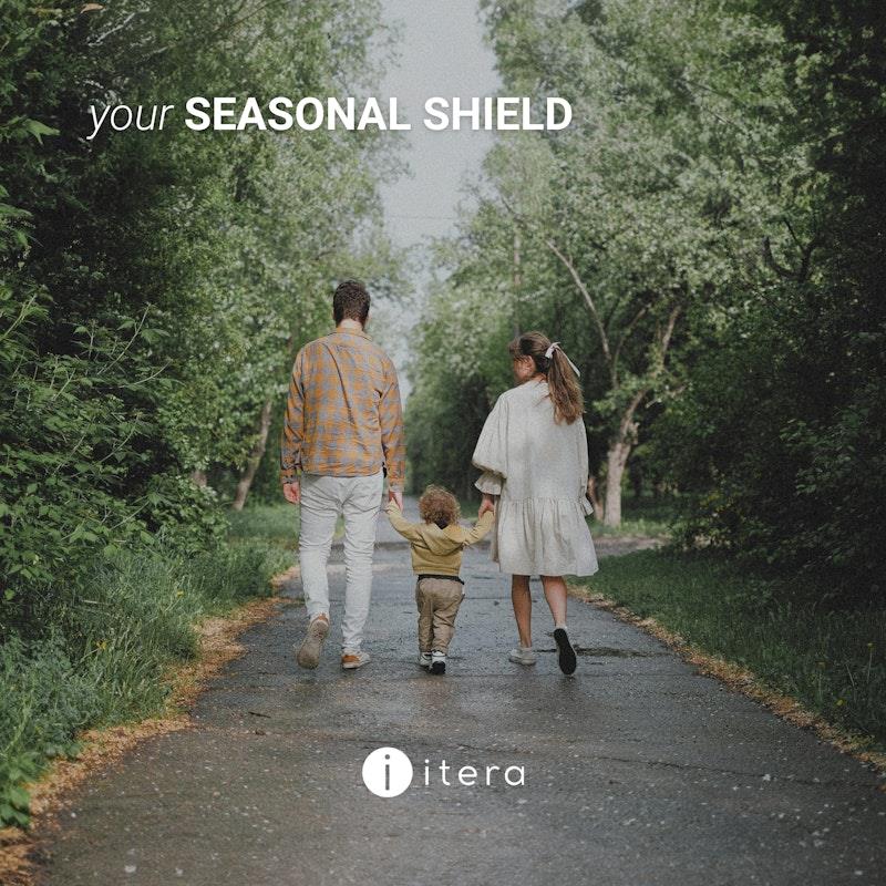 Strengthen your body’s natural defences with Itera Health Your SEASONAL SHIELD—a thoughtfully formulated blend designed to support immune function and reduce the severity and duration of seasonal illnesses. Combining Echinacea, Vitamin C, and Magnesium Glycinate with the calming terpene Eugenol, this formula helps keep you feeling your best, no matter the season.