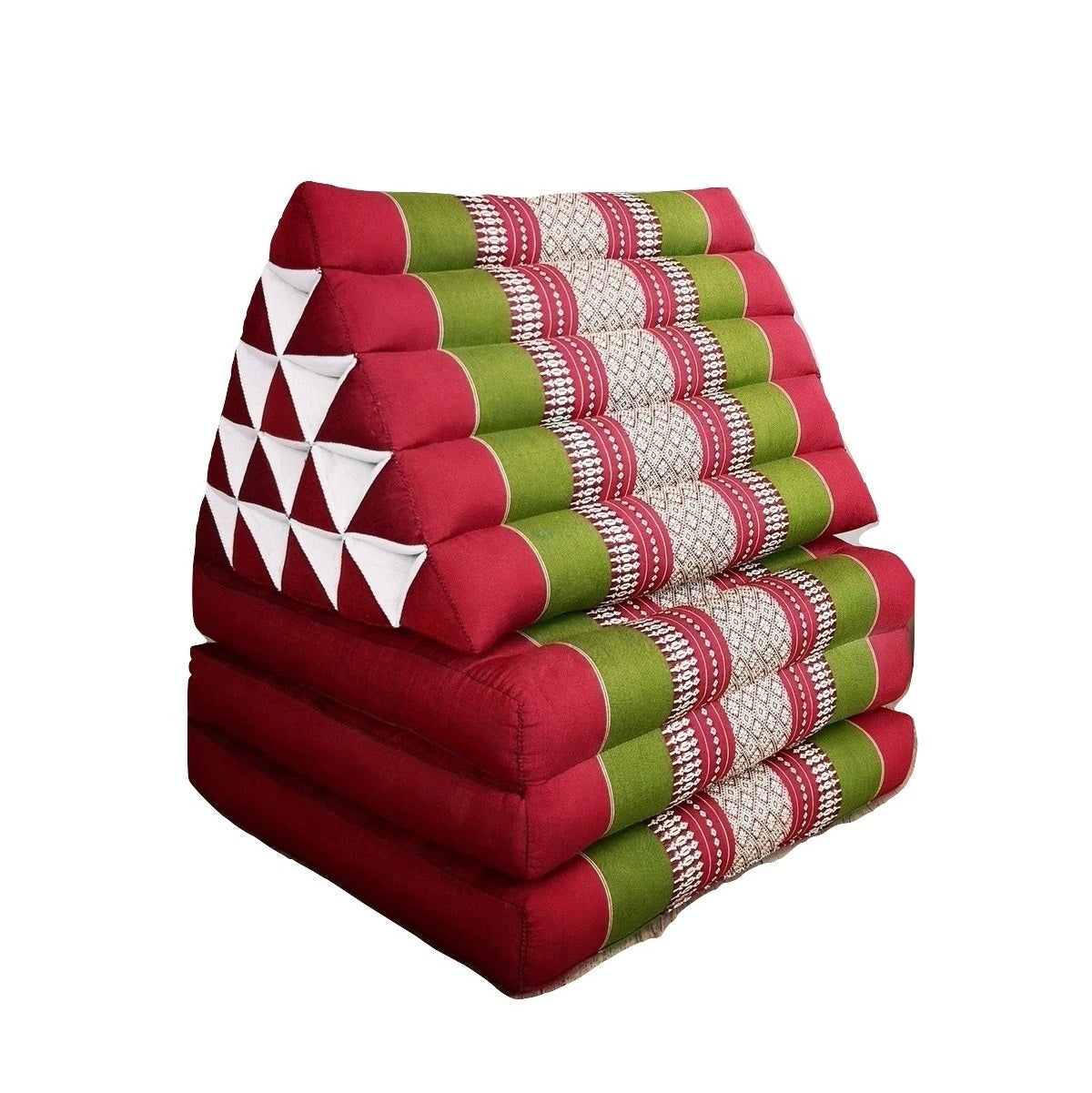 Bring a touch of Thai tradition to your home with this handmade, three-fold Thai triangle pillow. Stuffed with 100% organic kapok fibre and wrapped in durable cotton, this full-length fold-out cushion doubles as a floor lounge, daybed, meditation mat, or stylish guest mattress.