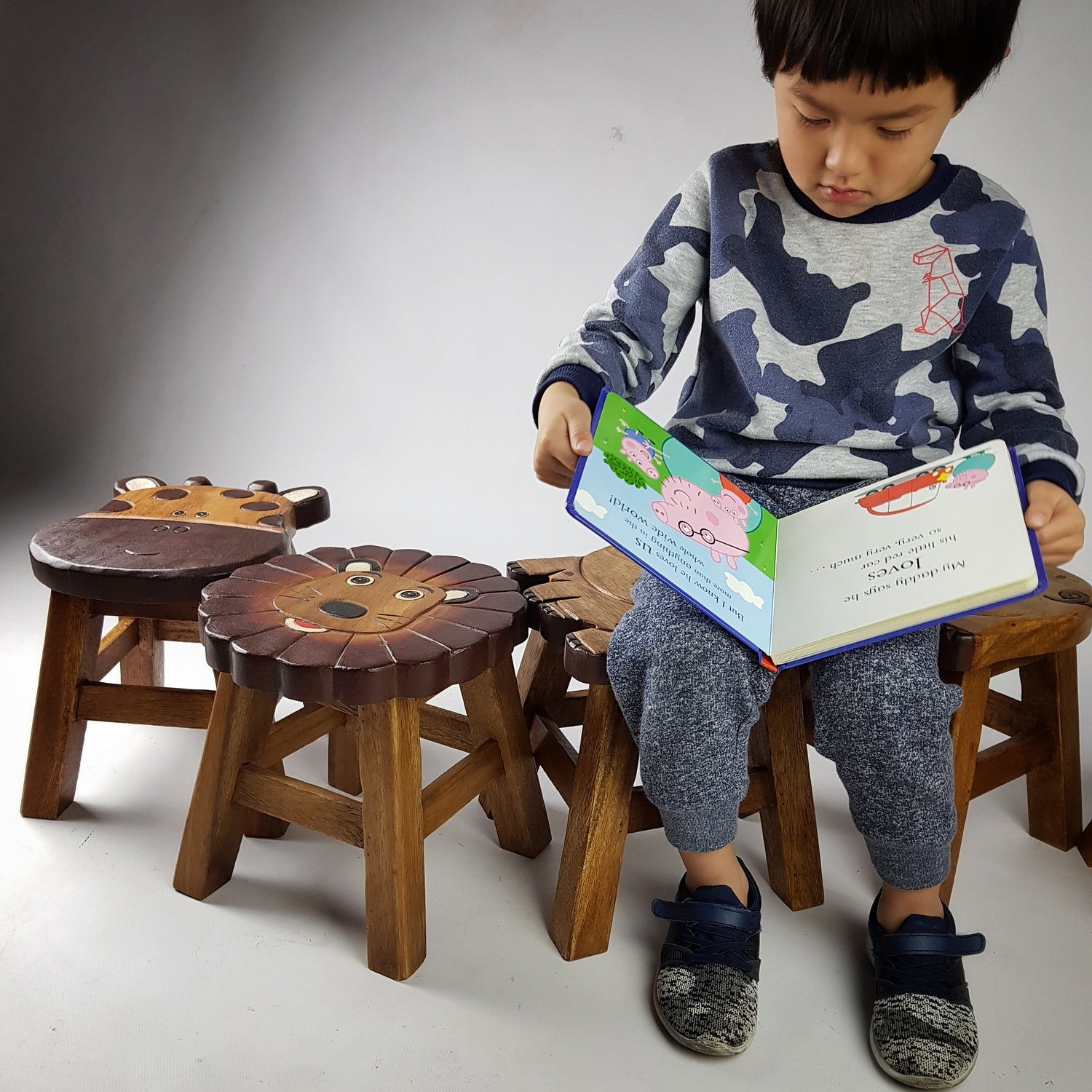 - Handmade Craftsmanship: Each stool is hand-carved and hand-painted with kid-safe, non-toxic paints.