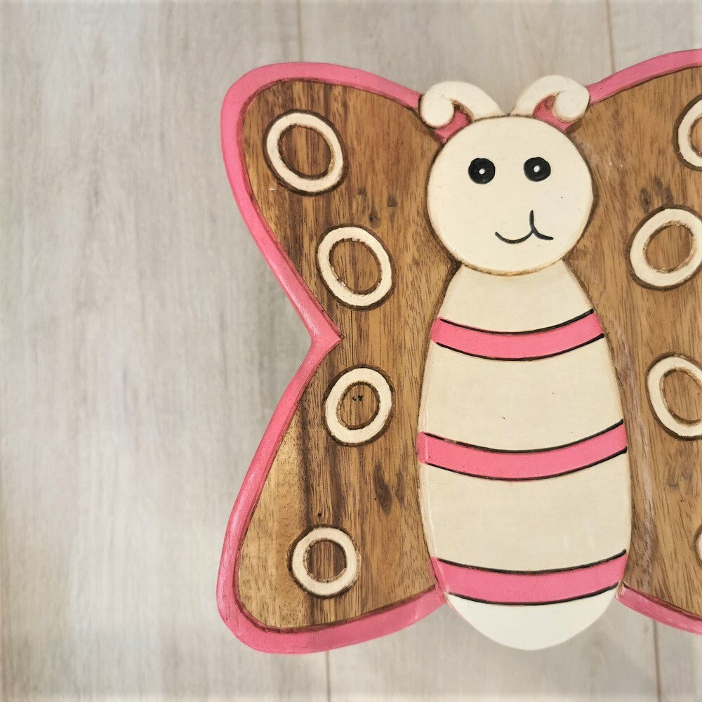 Premium Kids Wooden Butterfly Stool – Handmade Solid Wood Toilet Training and Step Stool