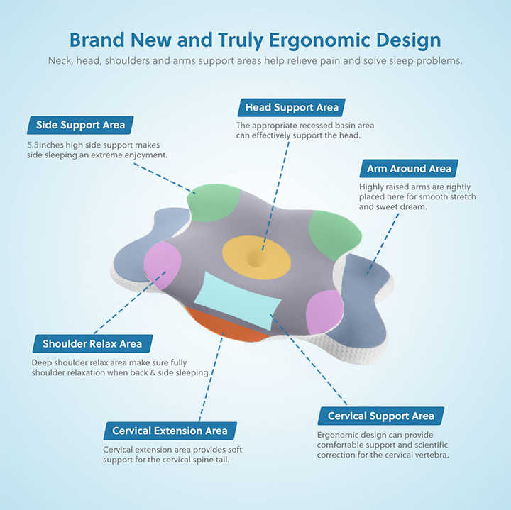 - Unique Ergonomic Butterfly Design: The distinctive butterfly shape features a central cervical contour to support the natural curve of your neck, while the 'wings' provide comfortable armrests and support for side sleepers. This design helps reduce tossing and turning.