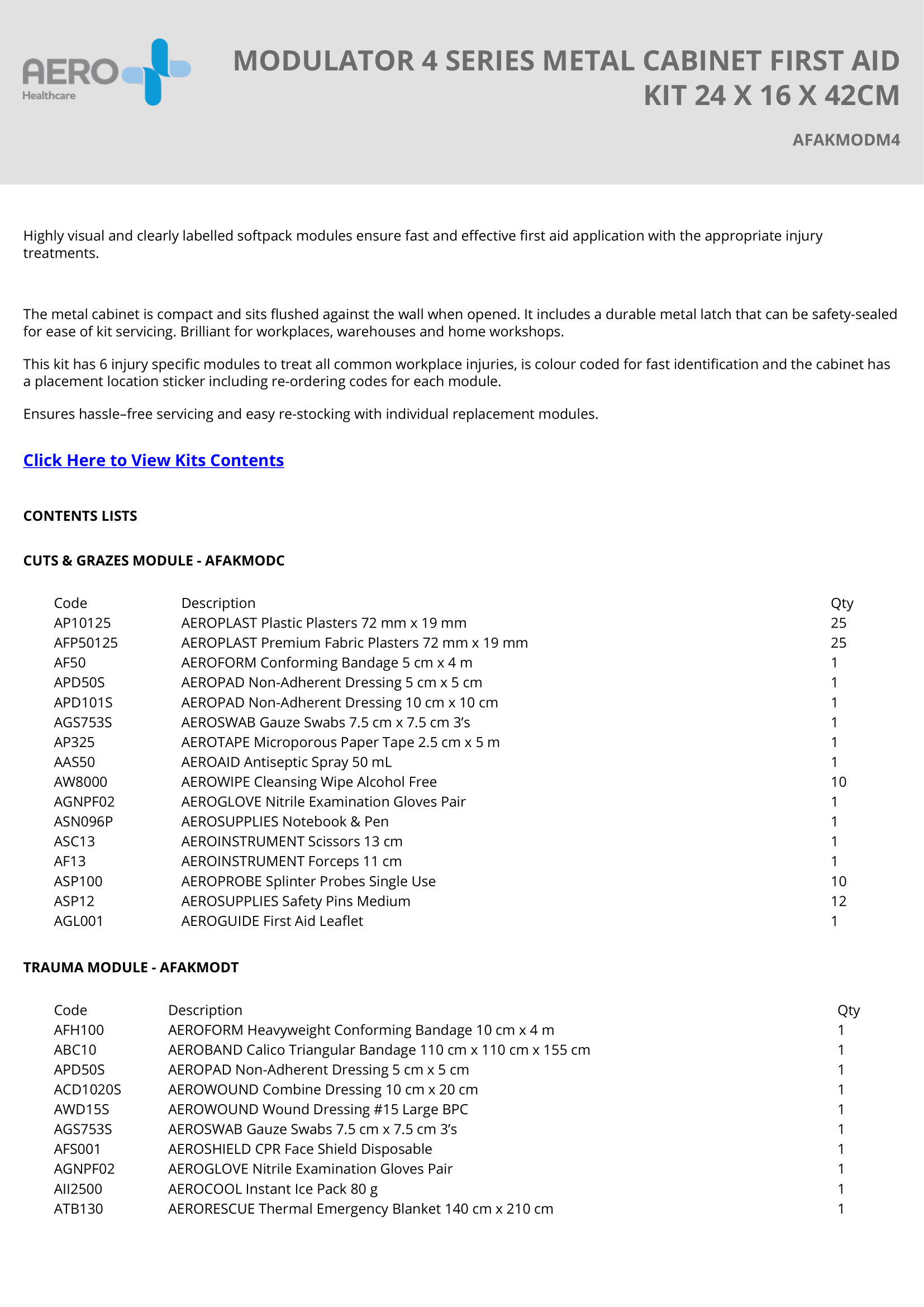 Ensure workplace safety with the MODULATOR 4 Series Metal Cabinet First Aid Kit. Designed to meet and exceed Australian workplace first aid standards, this compact and durable kit is ideal for offices, warehouses, workshops, and industrial environments.