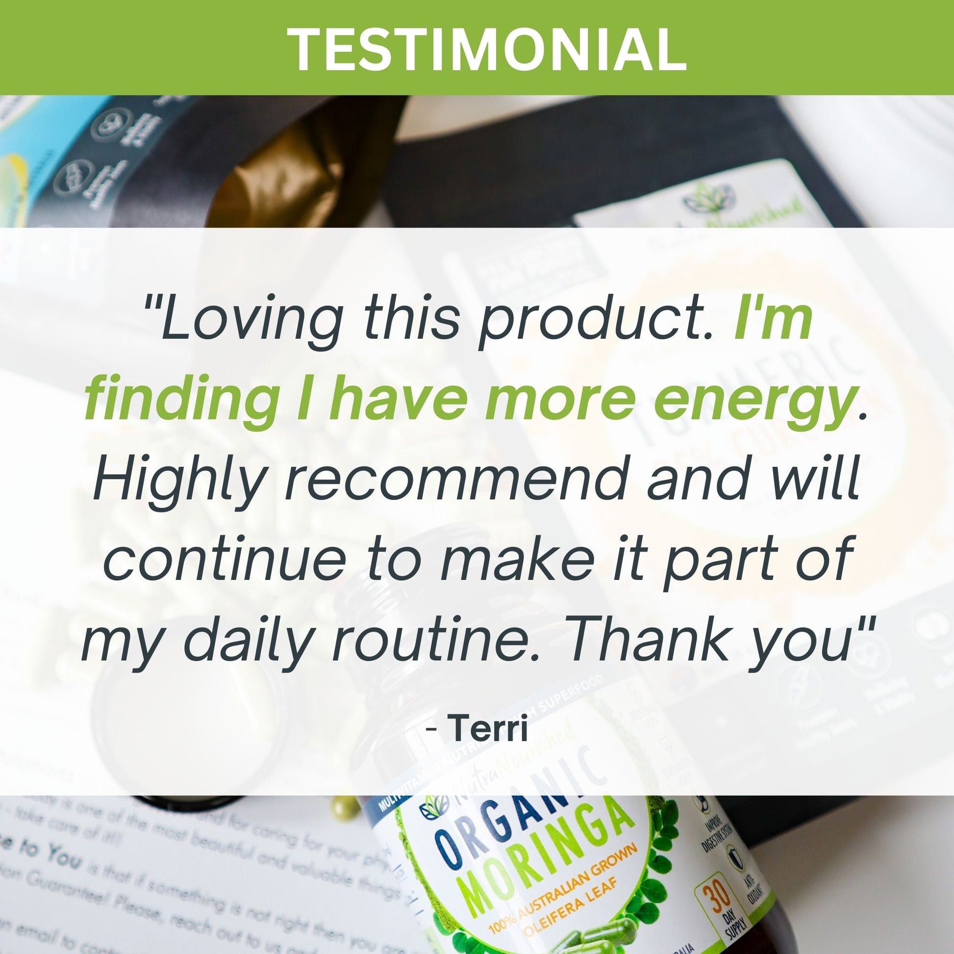 Nutra Nourished Organic Moringa Leaf Capsules are made with naturally dried Australian grown Moringa Leaf. Each capsule contains 360mg of Moringa Leaf powder with 60 capsules per bottle.