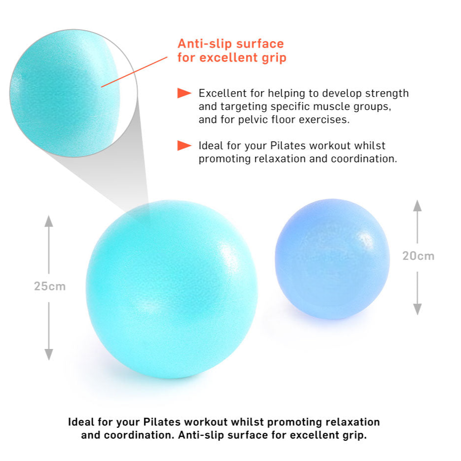 - Dual Sizes: Includes 20cm (blue) and 25cm (turquoise) balls to target various muscle groups.