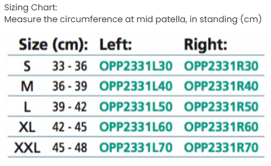 - Suitable for use in rehabilitation programmes, post-injury care, sports activity or for general knee stabilisation when extra control is needed.