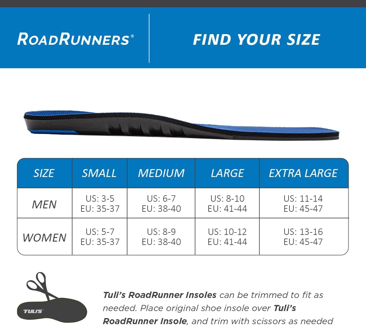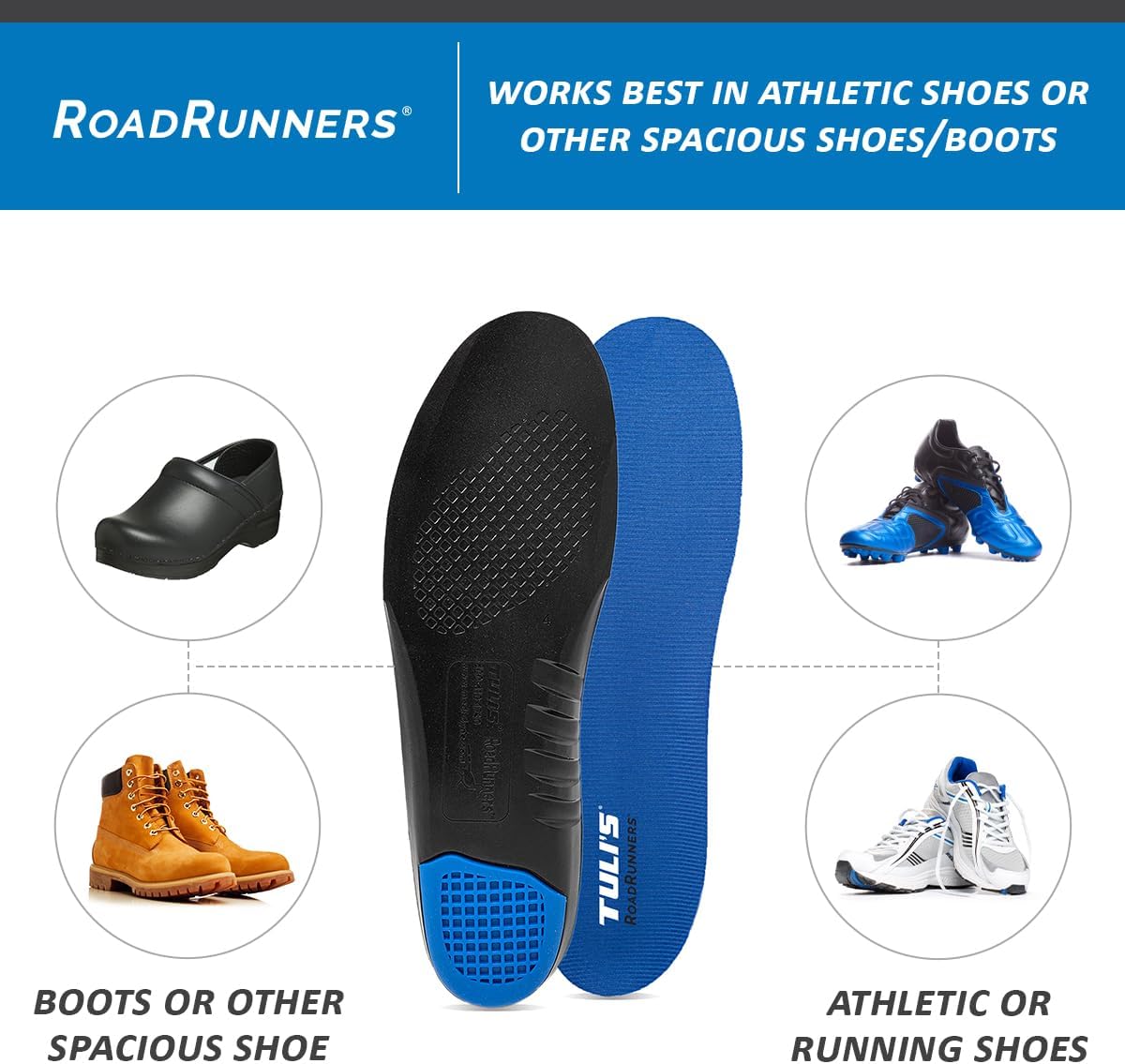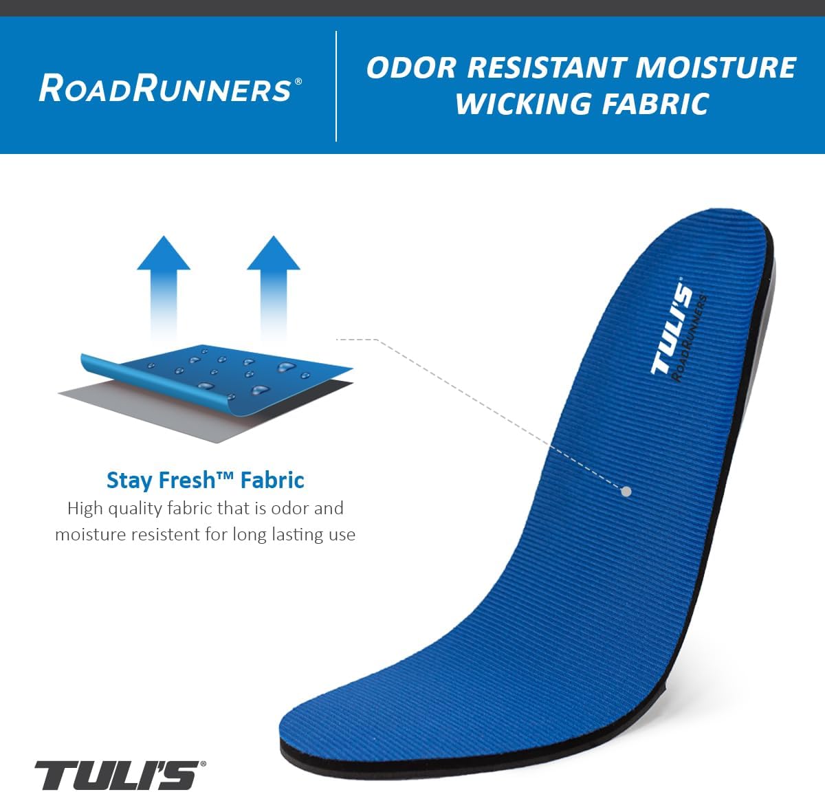 Tuli's RoadRunners Replacement Insoles - Premium Arch Support and Shock Absorption for Improved Performance