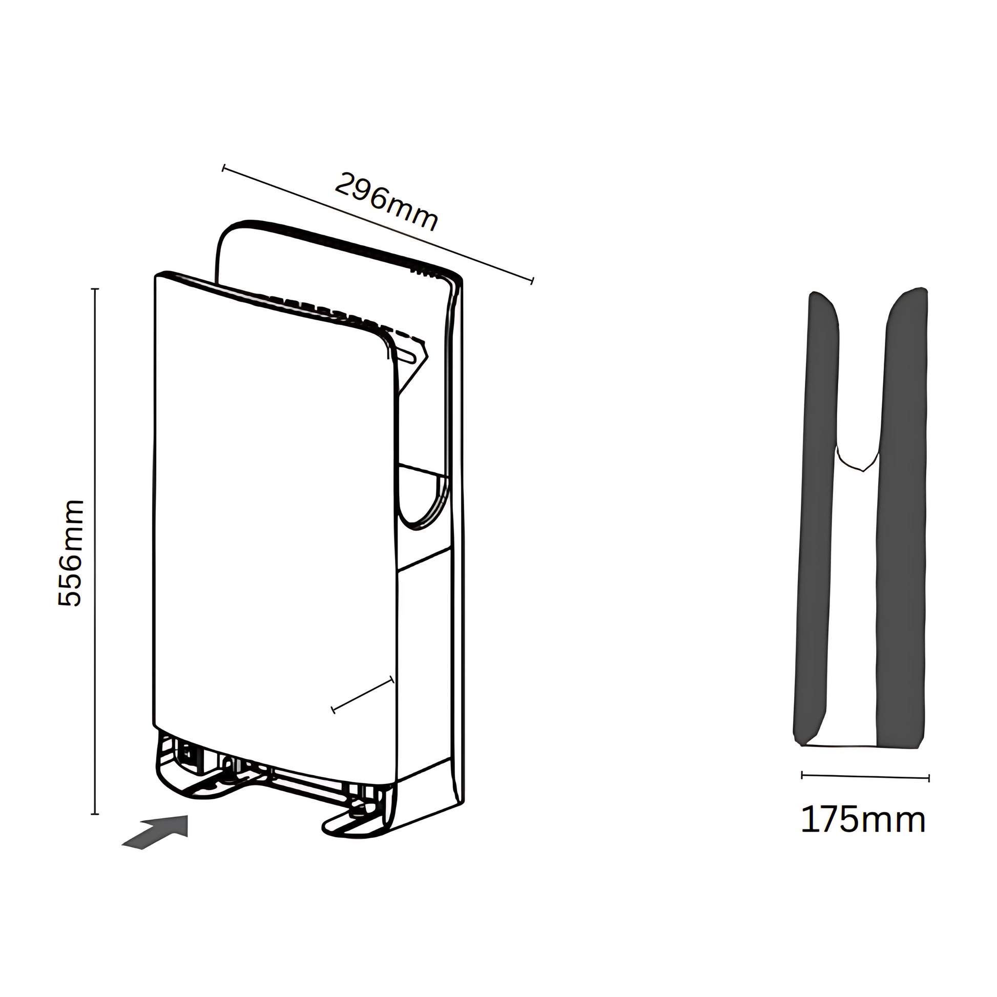- Fast Drying: Utilizes an 92 m/s airspeed to swiftly remove water from hands, similar to a windscreen wiper, ensuring hands are dry and hygienic in less than 10 seconds.