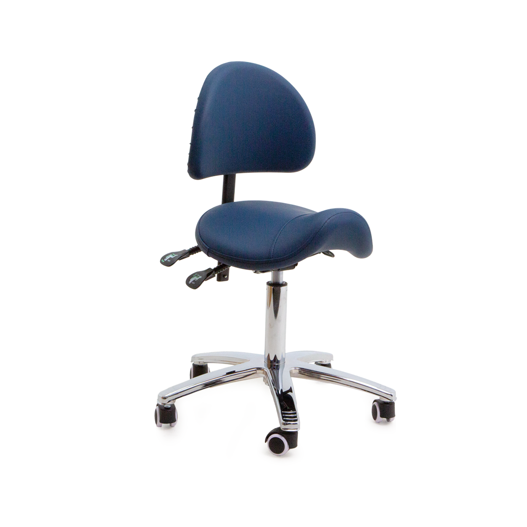 High quality saddle stool with backrest. It has adjustable seat and backrest angle along with backrest height and angle. Suitable for many applications.
